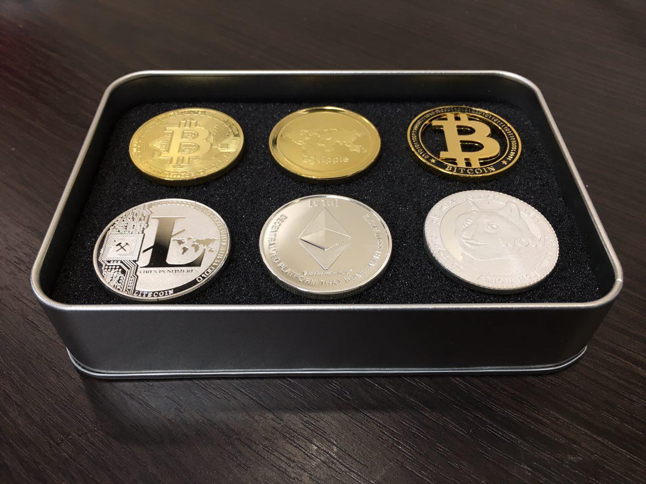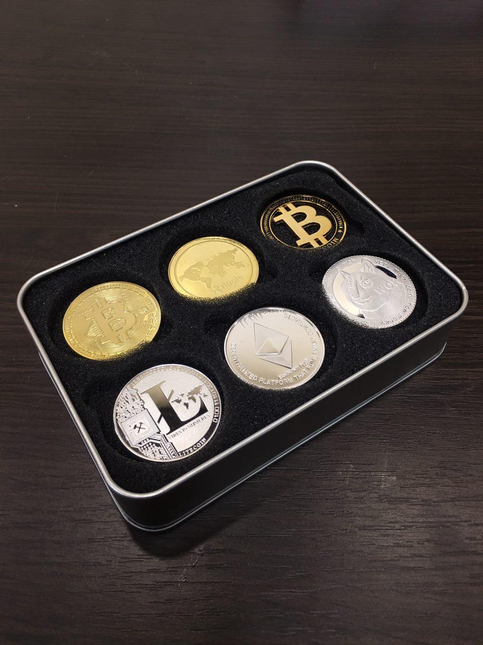 Подарочный набор криптовалют. Комплект можно собрать лично, из следующих монет: BTC, ETH, LTC, DOGE, XRP, XMR, DASH. Есть монеты разноплановые. Например того же BTC три вида. Все вопросы уточняйте у специалиста по работе с клиентами.