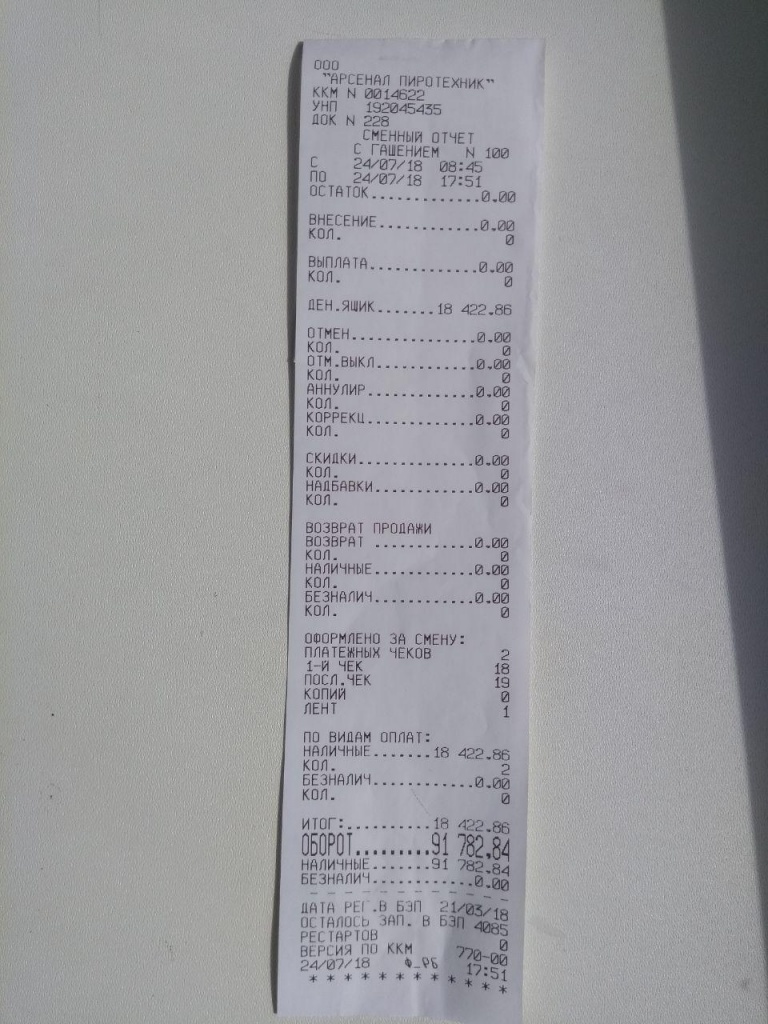 При самовывозе из магазина вы получаете чек следующего образца: